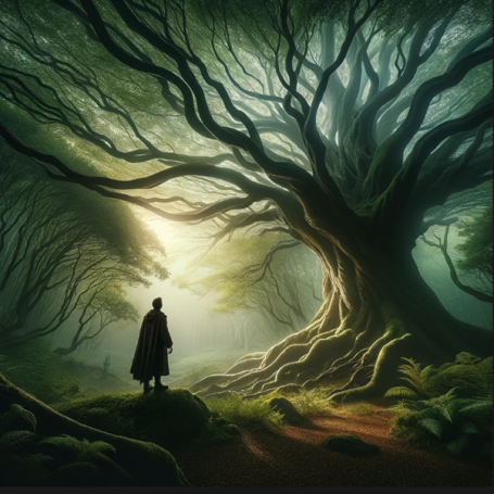 Als er einen moosbewachsenen Pfad entlangschlenderte, begann einer der Bäume, der älter und majestätischer war als die anderen, zu sprechen. Seine Stimme war tief und volltönend und hallte durch den Wald wie der Klang der Erde selbst. „Warum eilst du durch das Leben, ohne jemals innezuhalten, um zuzuhören?“, fragte der Baum, und seine Worte hingen in der Luft wie Morgennebel.