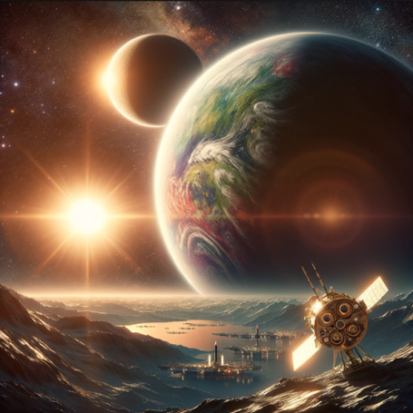 Elena und ihr Team bereiteten sich auf den Abstieg vor, ihre Herzen schlugen vor Vorfreude. Die Landung verlief reibungslos, und als sie auf Nova Terra ausstiegen, wurden sie von einer atemberaubenden Landschaft empfangen: Weite Ozeane glitzerten unter den Zwillingssonnen, Kontinente waren mit üppigen Wäldern und hoch aufragenden Bergen geschmückt, und die Luft war atembar, eine Seltenheit im Kosmos.