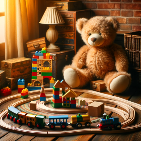 Als ich noch ganz klein war, war meine Welt voller Magie, Spiel und Fantasie, die durch meine Lieblingsspielzeuge zum Leben erweckt wurden. Unter ihnen nahmen drei Spielzeuge einen besonderen Platz in meinem Herzen ein: eine Holzeisenbahn, ein Set bunter Bauklötze und ein geliebter Teddybär namens Bärli.