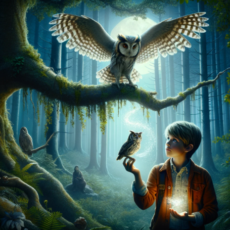 Endlich, nach einer scheinbar endlosen Zeit, erreichten Alex und Daniel die alte Eiche, in der die weise alte Eule lebte. Mit einer Stimme, die so alt war wie die Zeit selbst, hörte die Eule sich ihre Leidensgeschichte an und nickte weise. Als Gegenleistung für ihre Hilfe verlangte die Eule ein Versprechen: dass Alex und Daniel die Magie der Natur immer respektieren und schützen würden – ein Versprechen, das sie bereitwillig gaben.