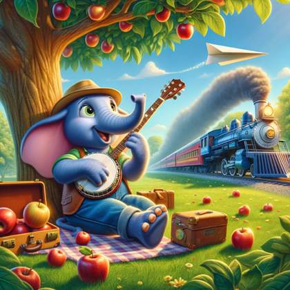Ohne zu zögern packte Elli ihr Banjo und ein paar Äpfel für die Reise ein und machte sich auf den Weg zum Bahnhof. Der Zug zum Melodie Platz war als Harmonie Express bekannt, eine prächtige Lokomotive, die durch atemberaubende Landschaften fuhr und Musiker und Träumer gleichermaßen miteinander verband.