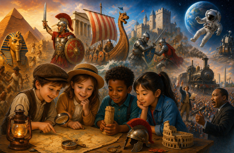 Unsere kindgerechten Videos erzählen von großen Entdeckungen, berühmten Persönlichkeiten und wichtigen Momenten der Geschichte – einfach erklärt und lebendig dargestellt. So wird Geschichte verständlich, spannend und greifbar für junge Entdeckerinnen und Entdecker.