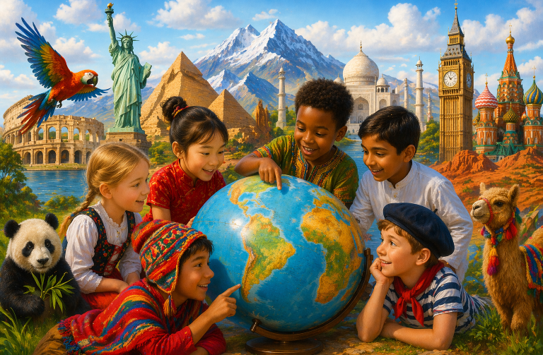 Unsere kindgerechten Videos zeigen dir die faszinierenden Länder der Erde – mit ihren Menschen, Kulturen, Tieren und besonderen Traditionen. Spielerisch und leicht verständlich lernst du, wie unterschiedlich und gleichzeitig bunt unsere Welt ist.