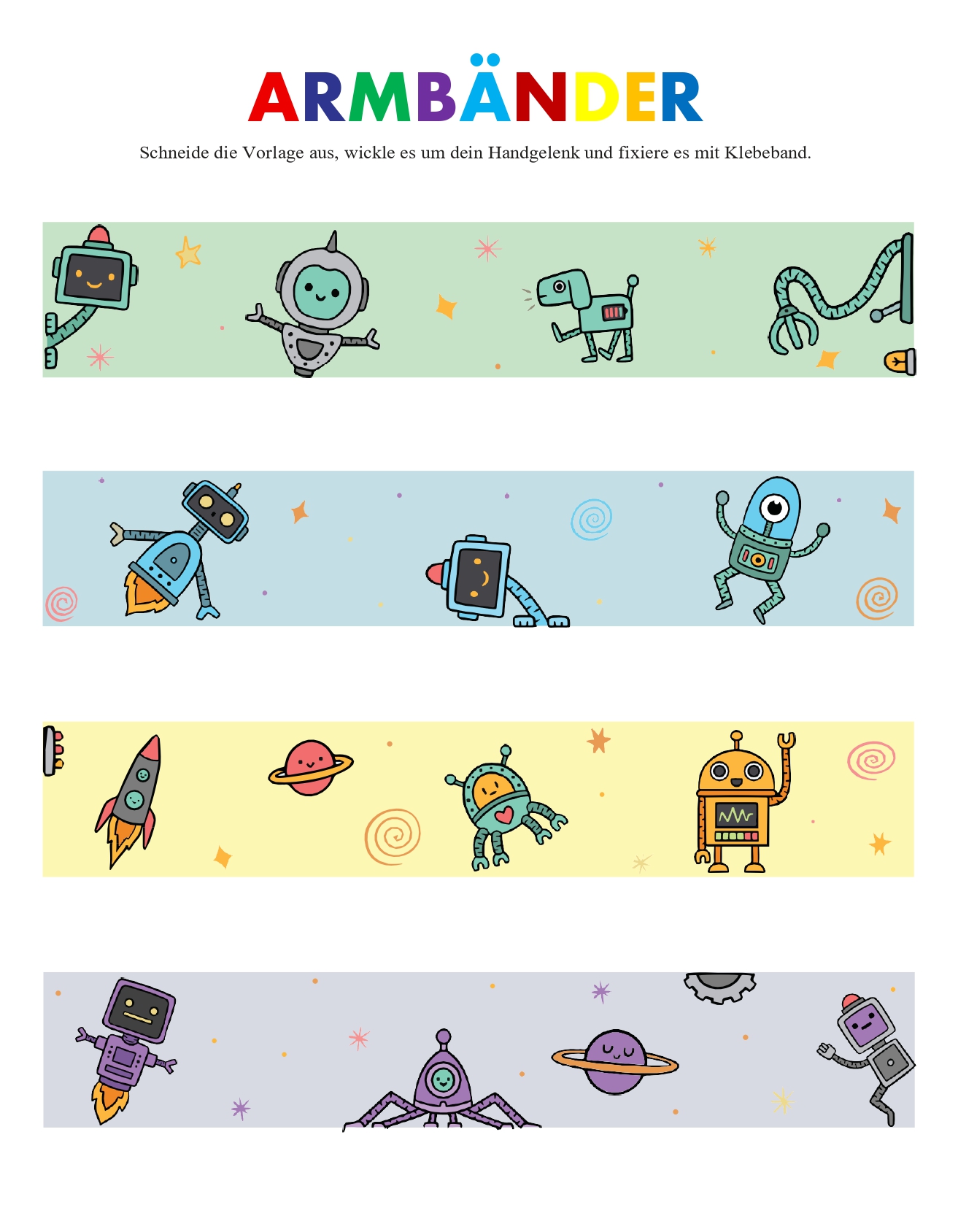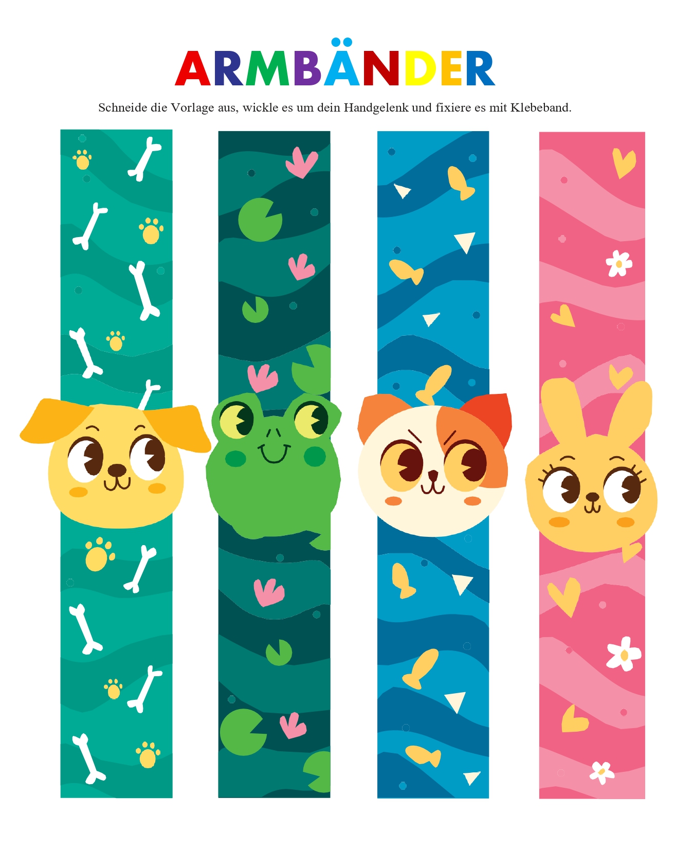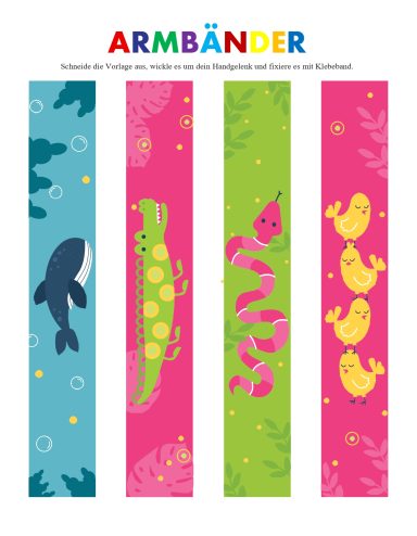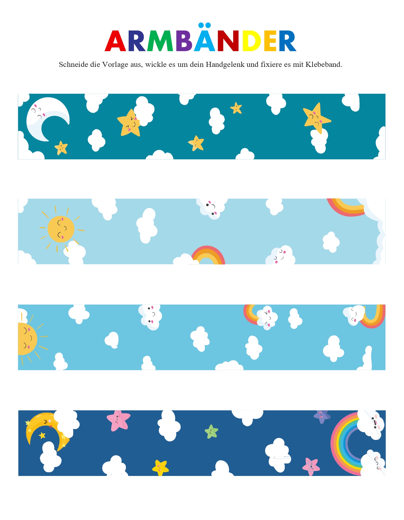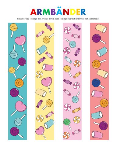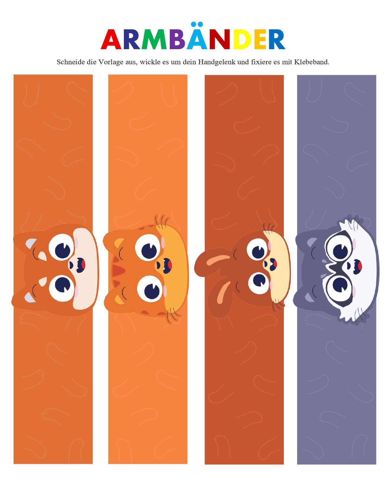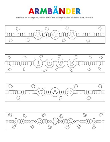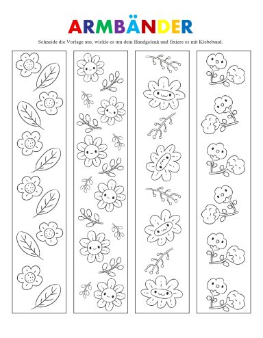 Wähle aus den Vorlagen: Zum ausschneiden, selber bemalen und danach fixerst du diese mit Klebeband an deinem Handgelenk