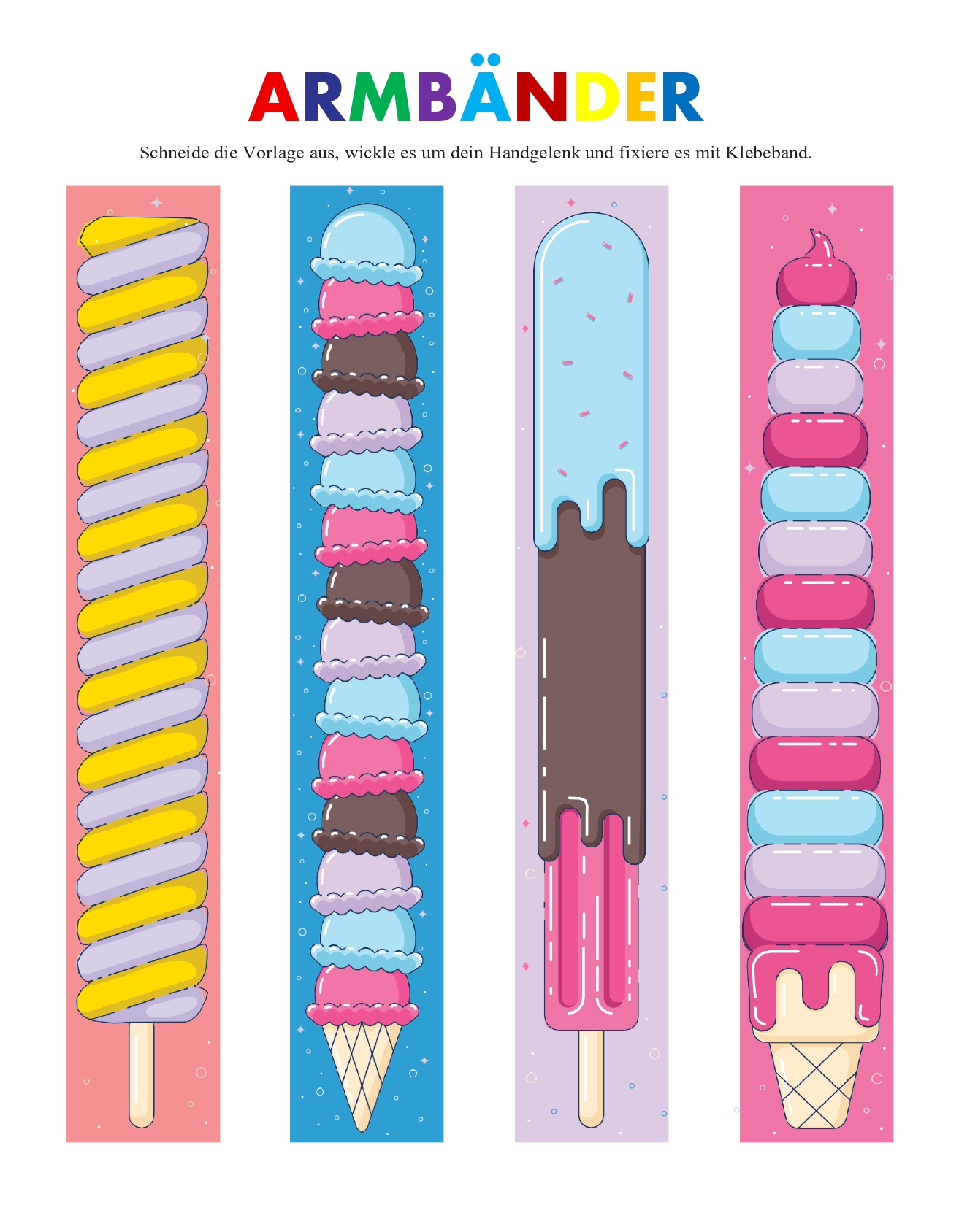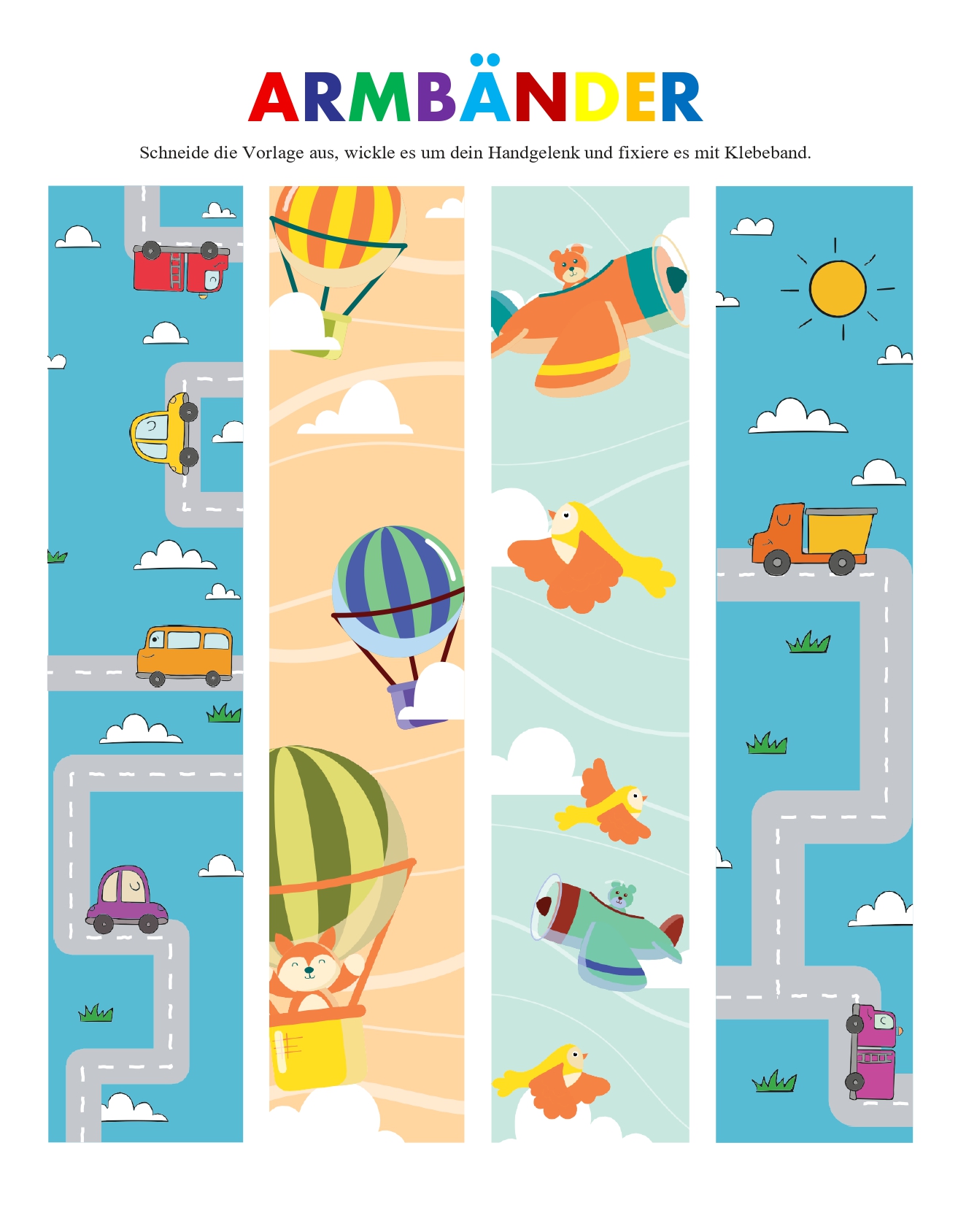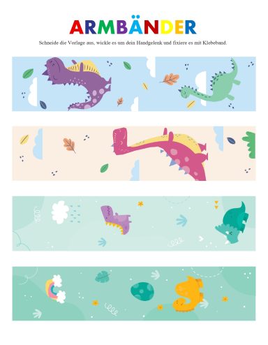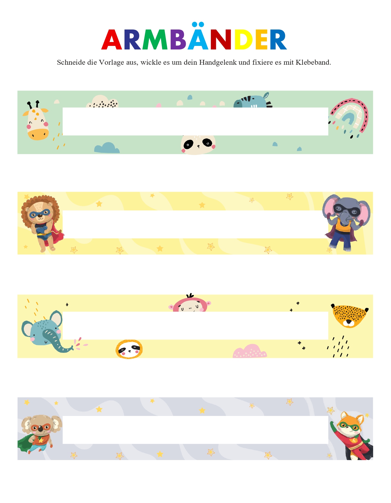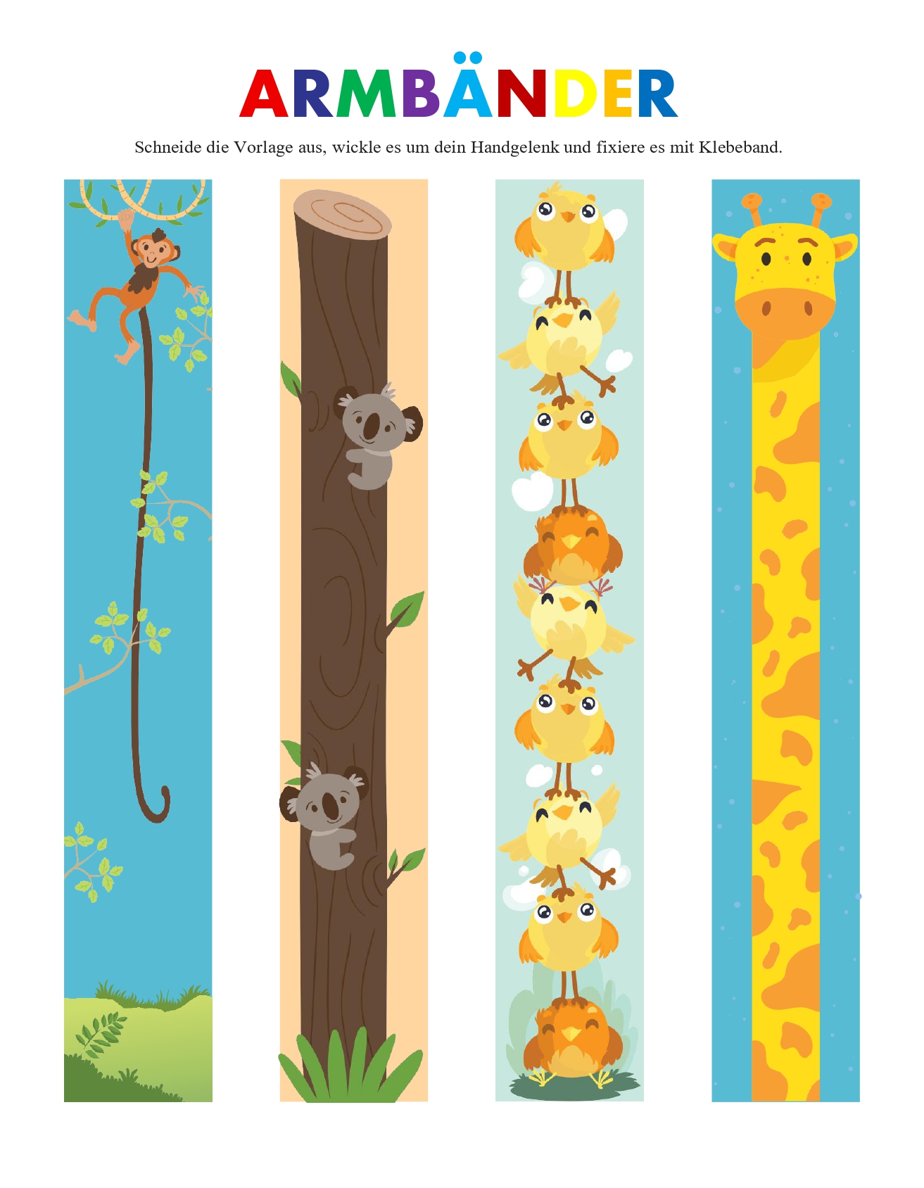 Wähle aus den Vorlagen: Zum ausschneiden, selber bemalen und danach fixerst du diese mit Klebeband an deinem Handgelenk