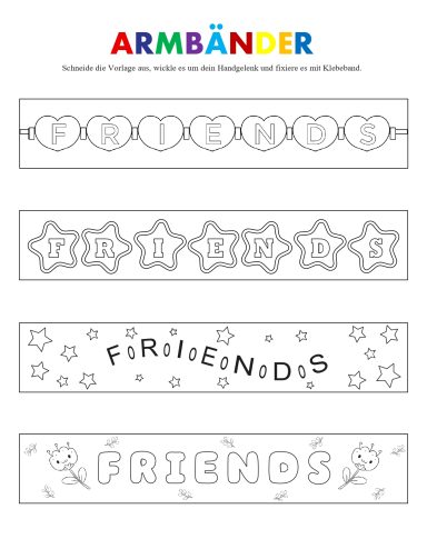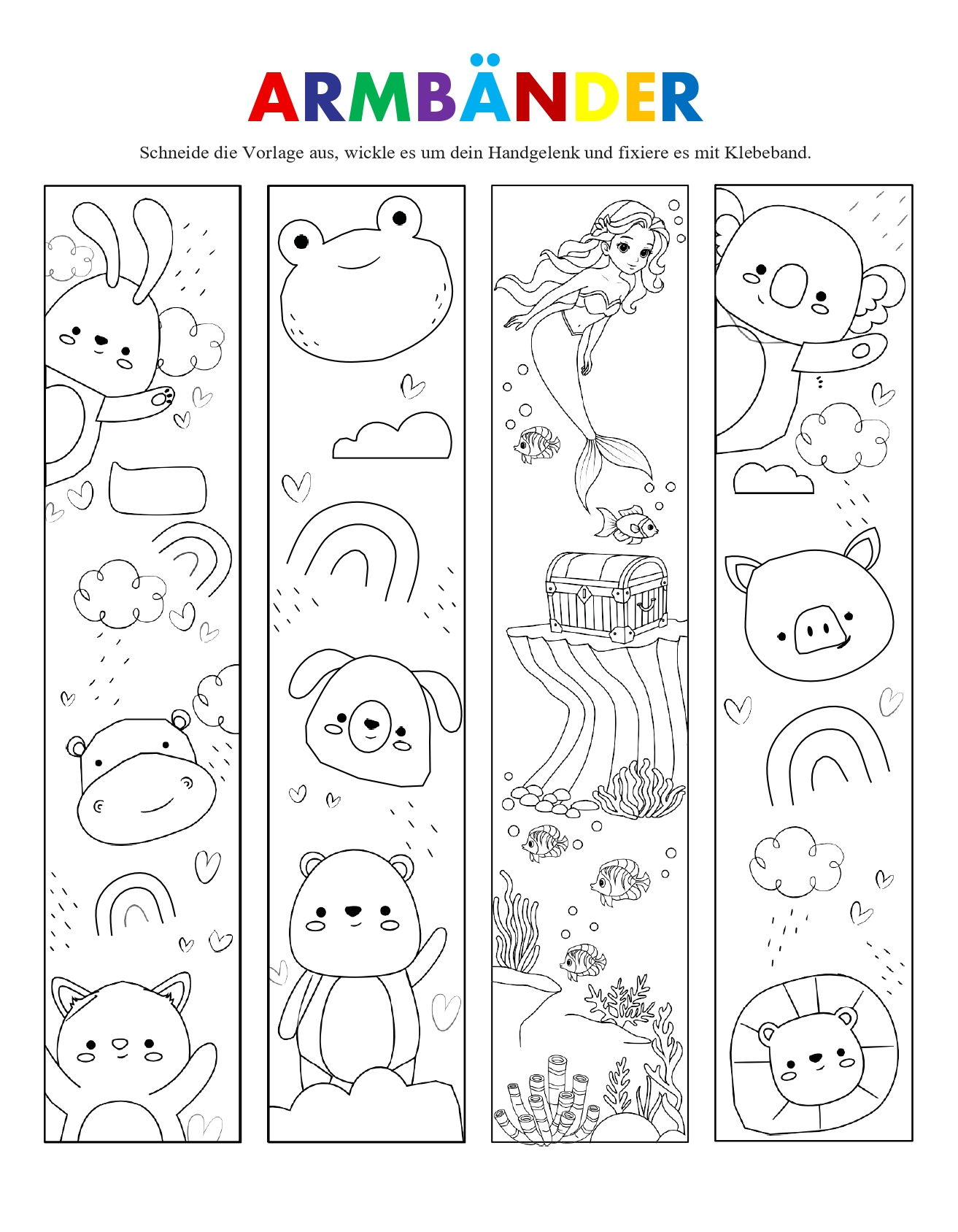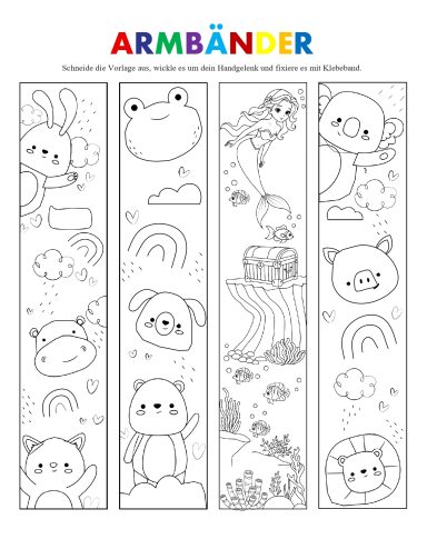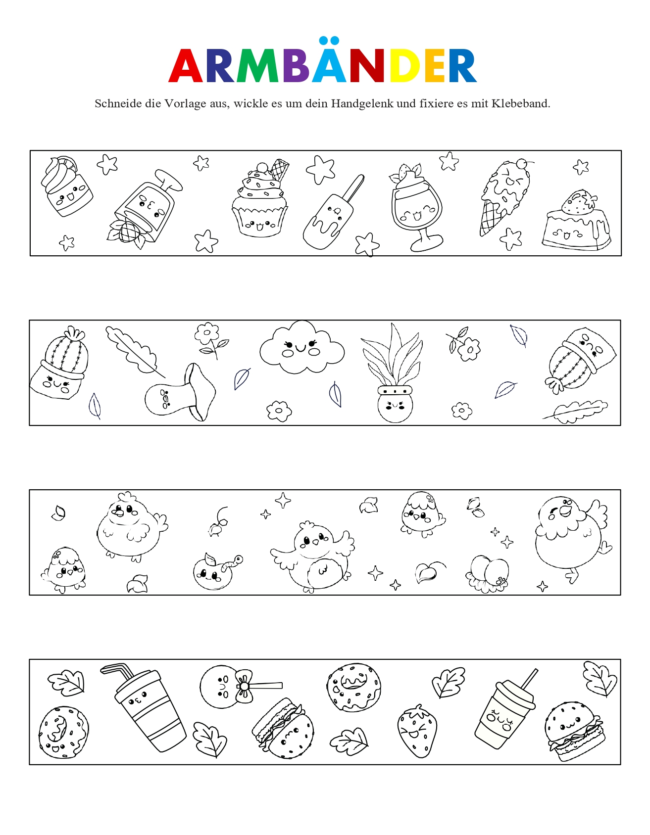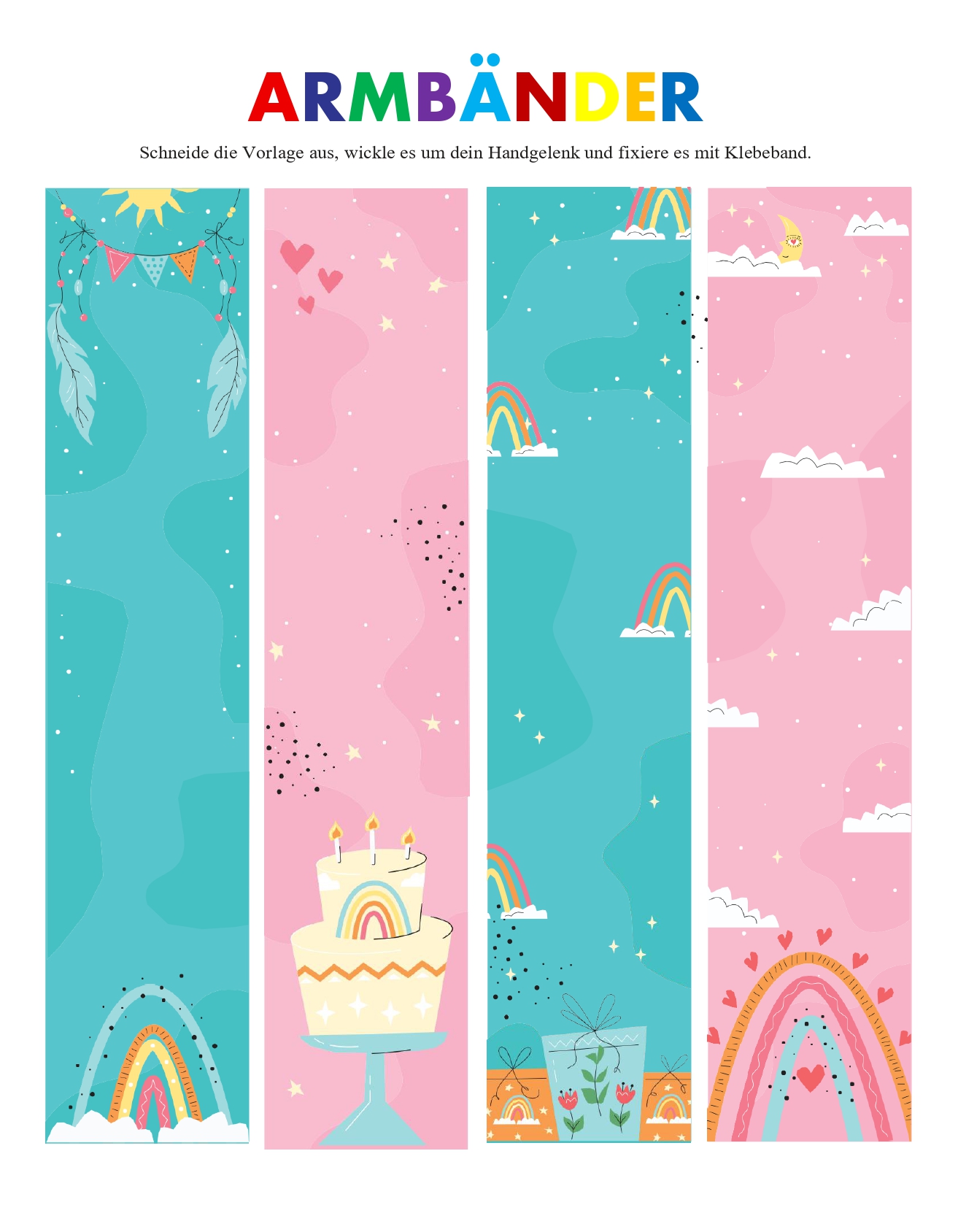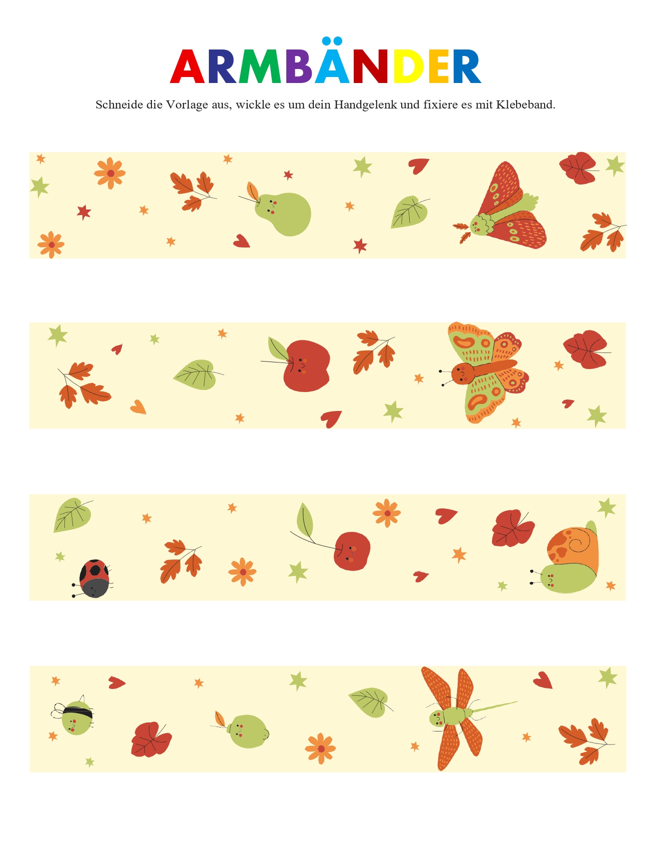 Wähle aus den Vorlagen: Zum ausschneiden, selber bemalen und danach fixerst du diese mit Klebeband an deinem Handgelenk